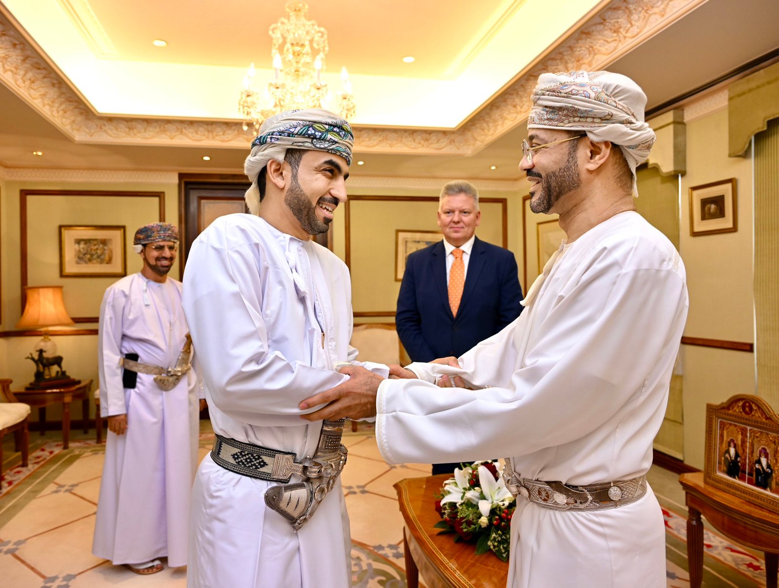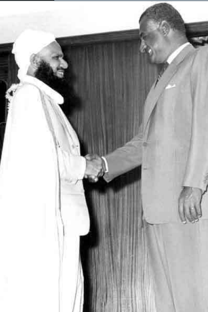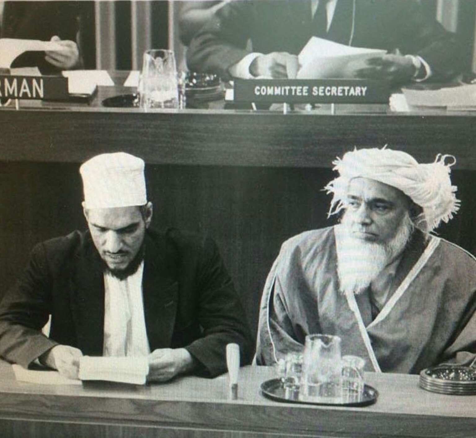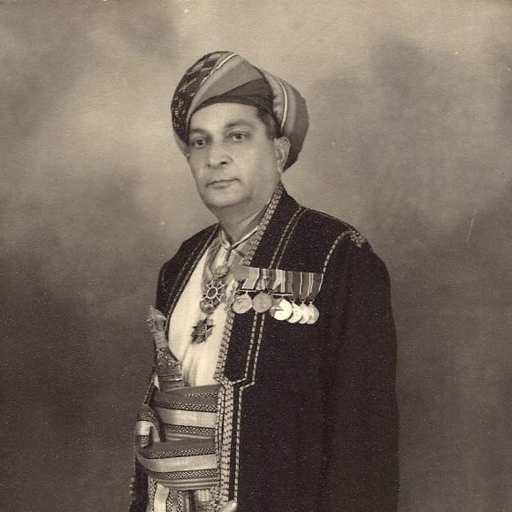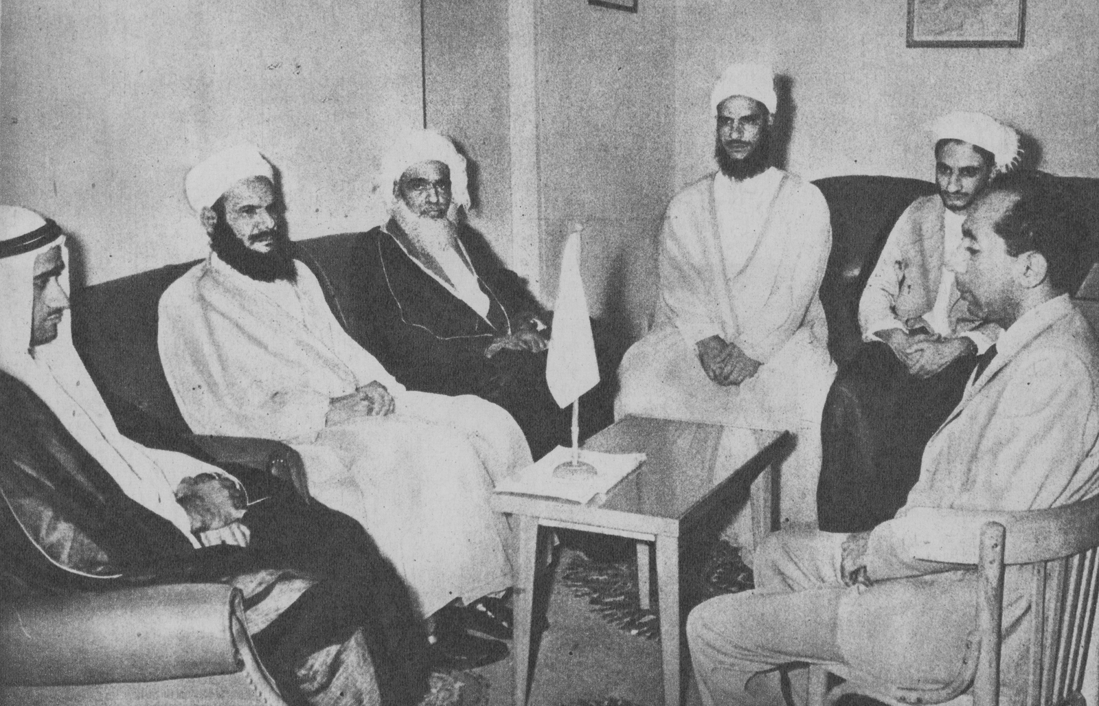 the Minister of Education and Minister of Islamic Affairs, Endowments, and Zakat in Oman. Back: Sheikh Ahmed Al Khalili, the Grand Mufti of Oman. Date of photo unknown. Source: Pinterest.